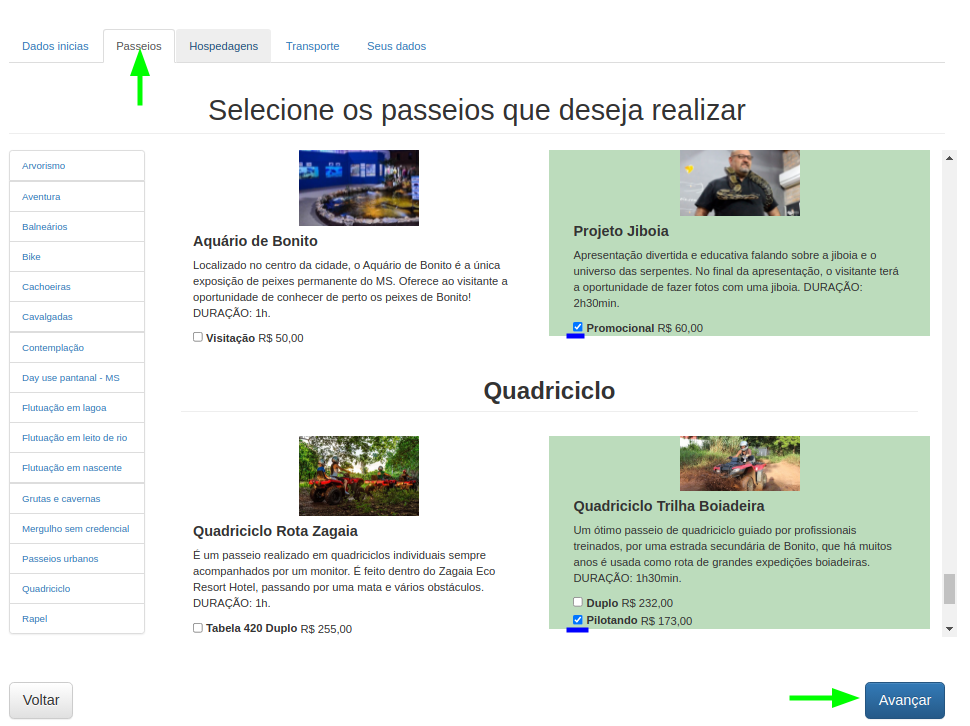 Realize um orçamento guiado escolhendo os passeios de sua preferência. Ao final, receberá seu orçamento, *sem compromisso.